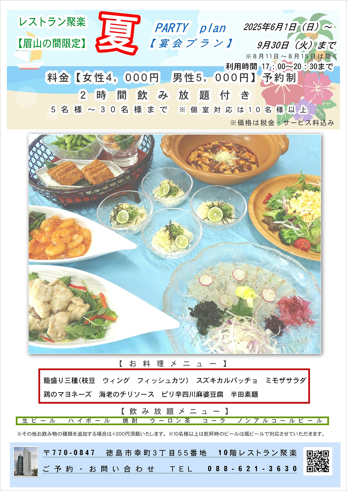 単品料理、コース料理、セット料理のメニューからお楽しみいただけます。会社の同僚、お友達同士、ご家族、カップルにも最適!夜景も美しいホテル千秋閣10階「レストラン聚楽」をご利用ください!夜景を眺めながら楽しいひとときを…。